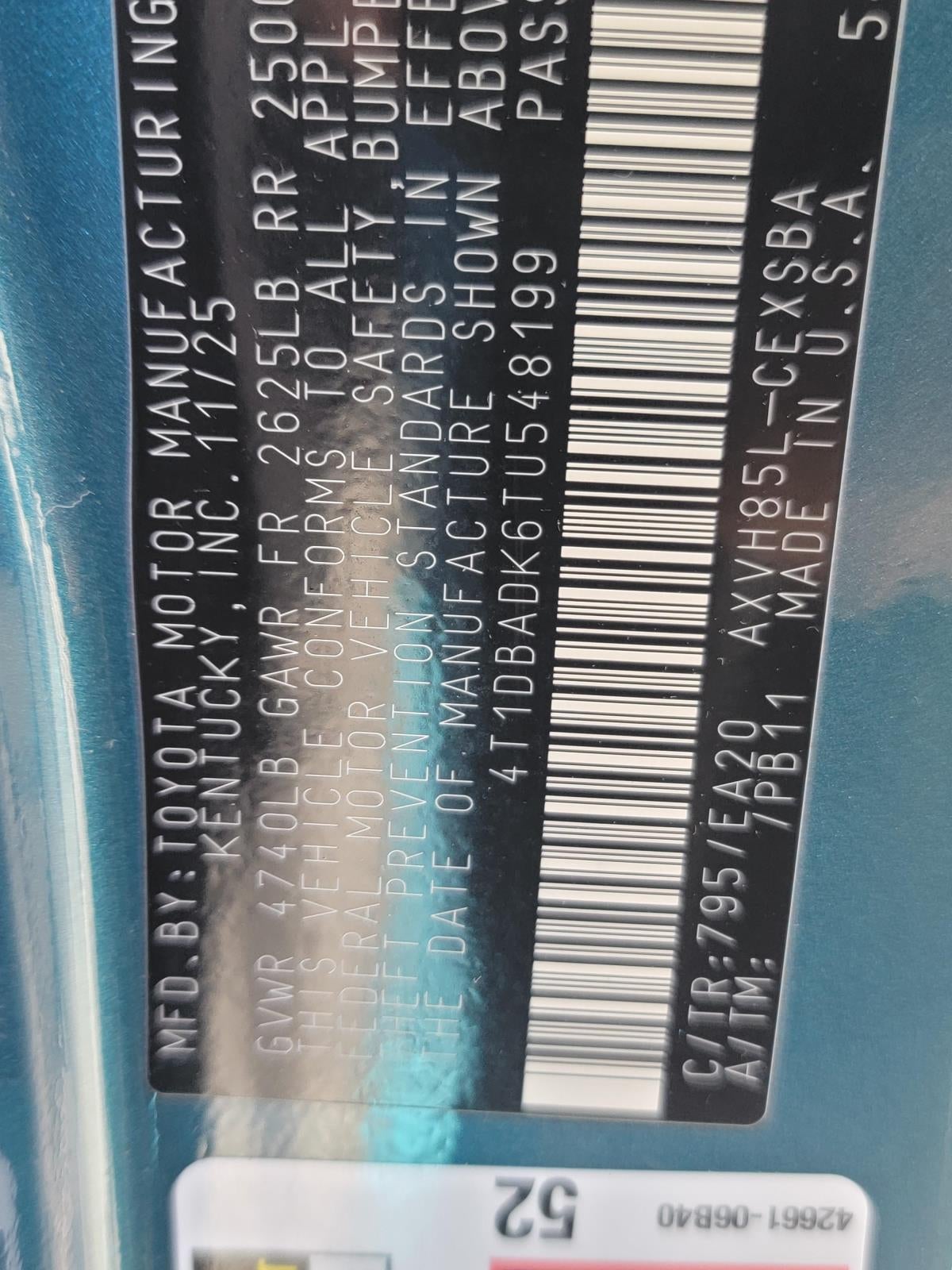 VIN: 4T1DBADK6TU548199