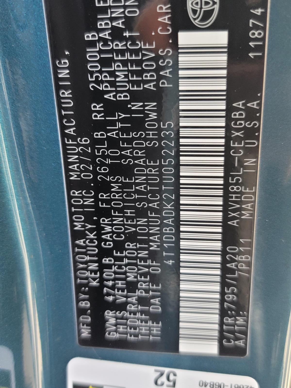 VIN: 4T1DBADK2TU052235
