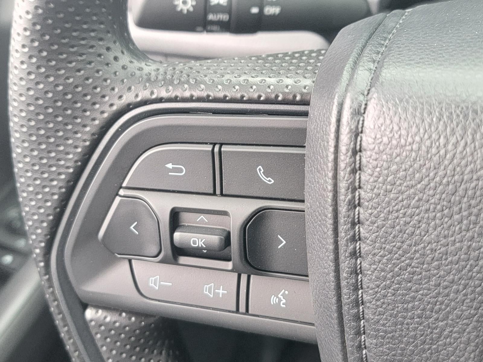 • Polyurethane manual tilt/telescopic steering wheel with phone, audio, display/infotainment, and Driver Assist controls