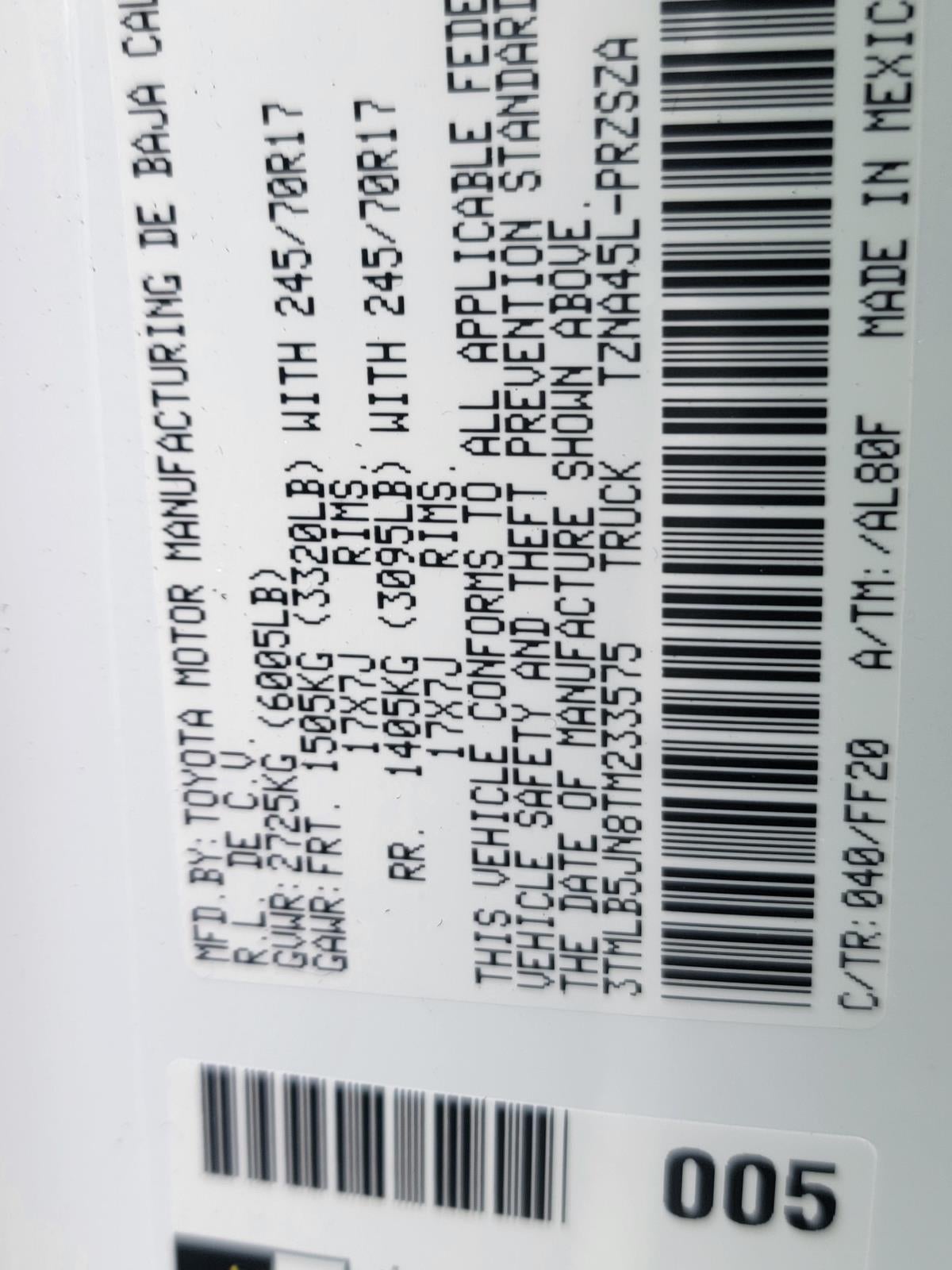 VIN: 3TMLB5JN8TM233575