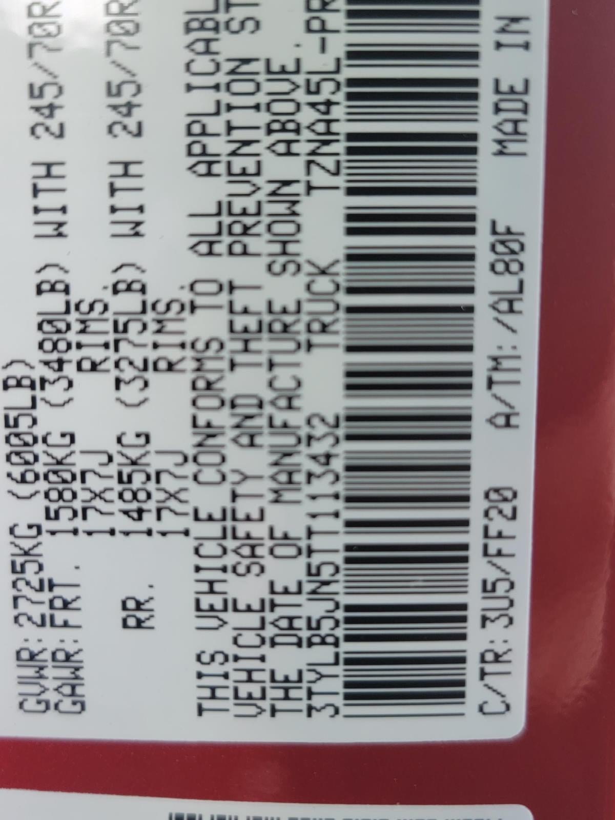 VIN: 3TYLB5JN5TT113432