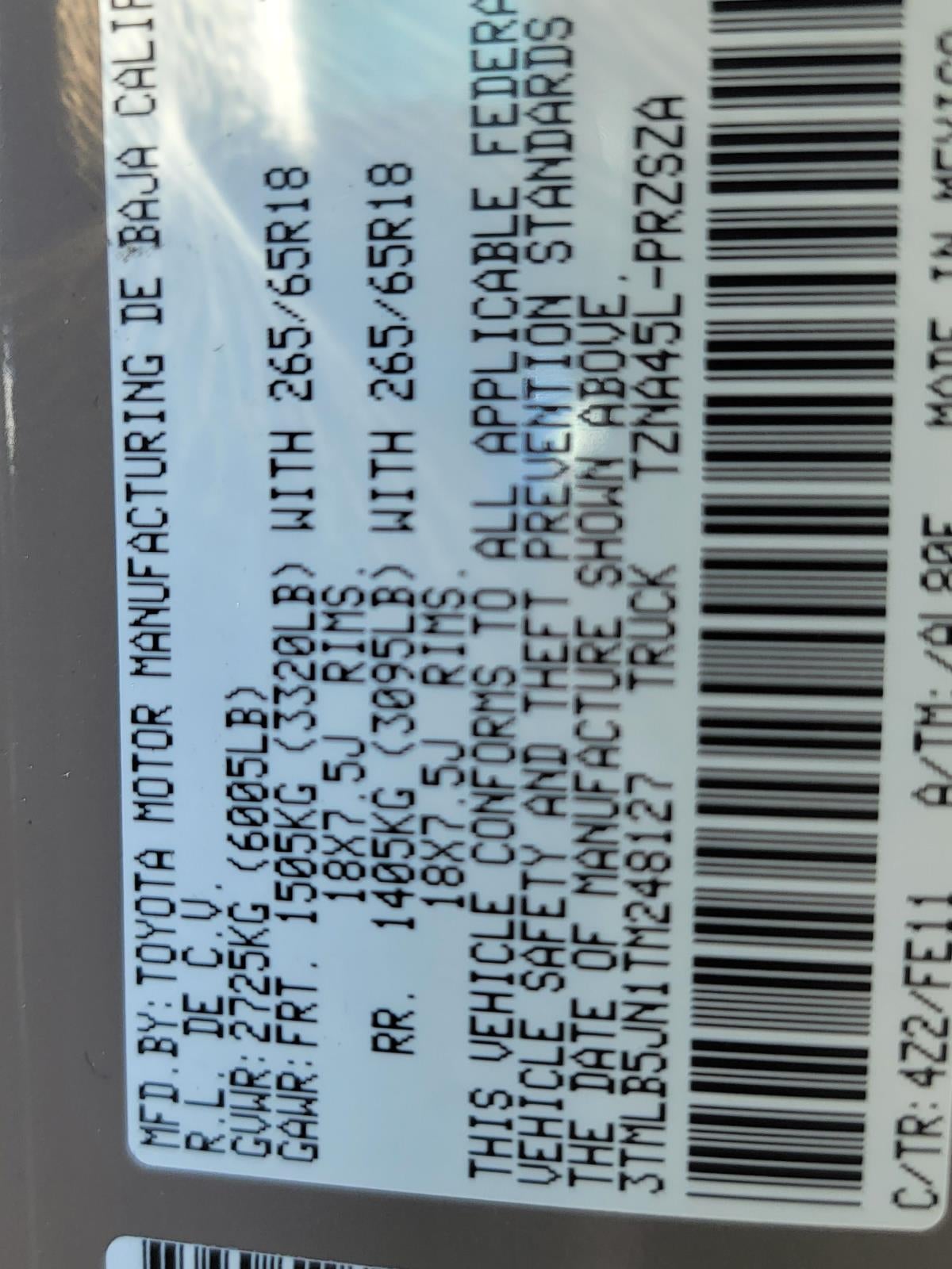 - Vehicle Name: Toyota Tacoma 4WD
