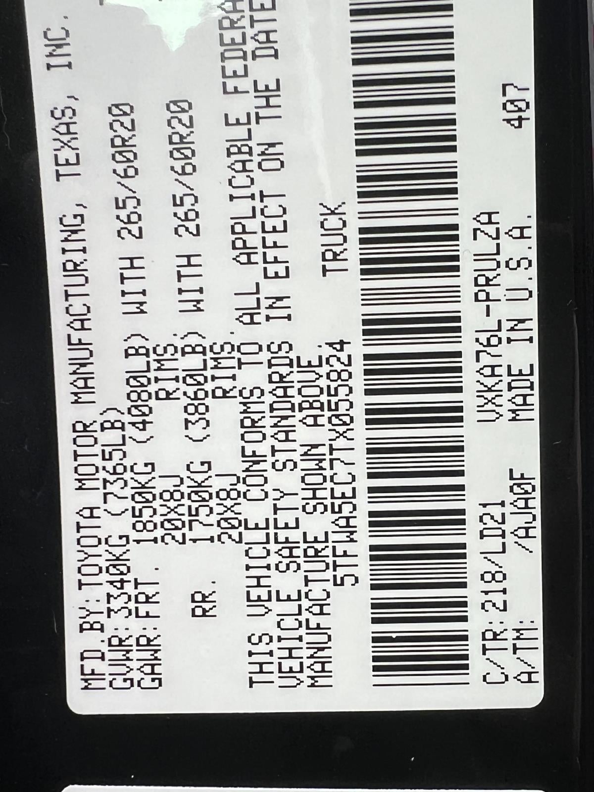 - Vehicle Name: Toyota Tundra 4WD
